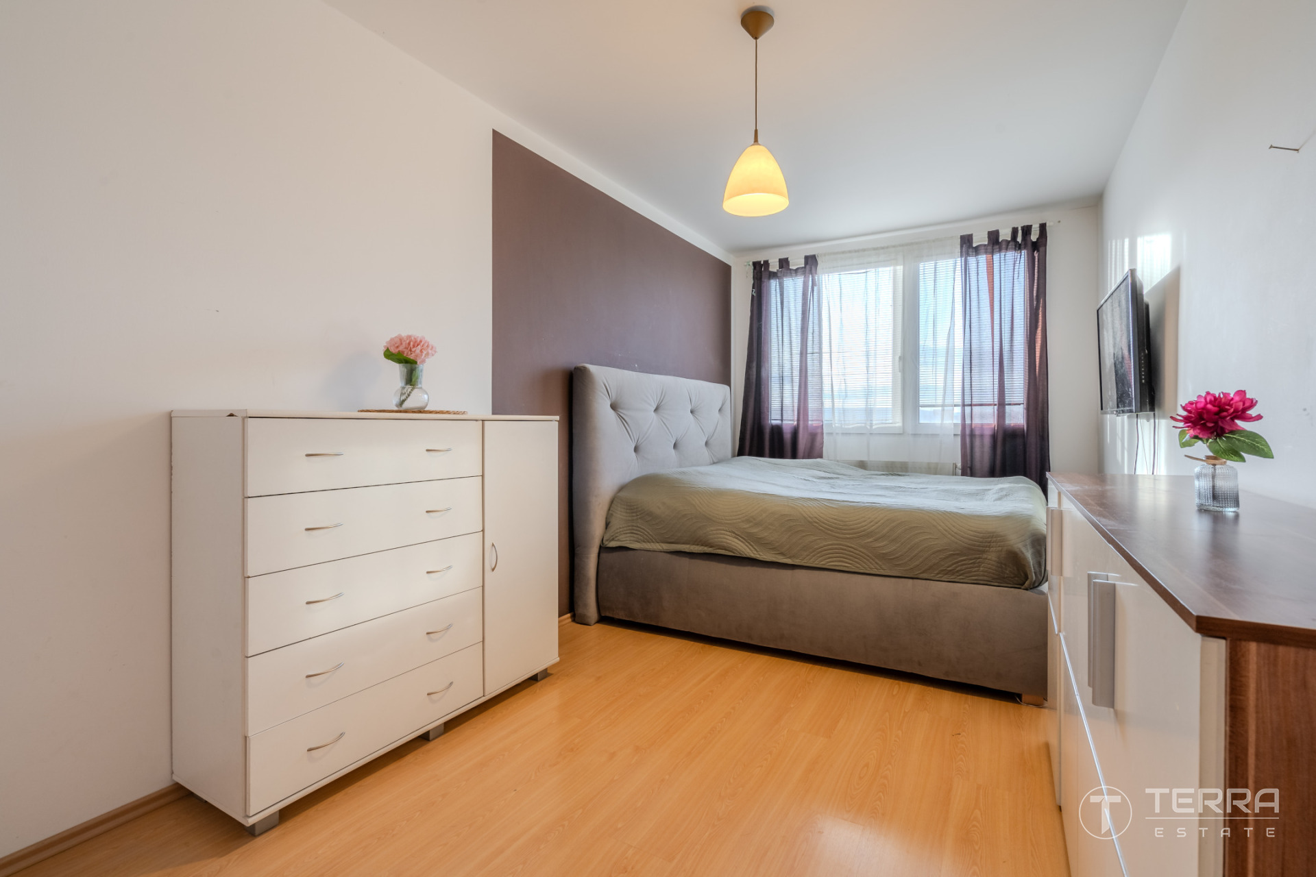 Byt je velmi prostorný – hlavní obytná část s kuchyňským koutem nabízí dostatek místa pro pohodlné bydlení, nechybí samostatná šatna ani prostorná koupelna. Velkým bonusem je zabudovaná klimatizace, která zpříjemní horké letní dny.