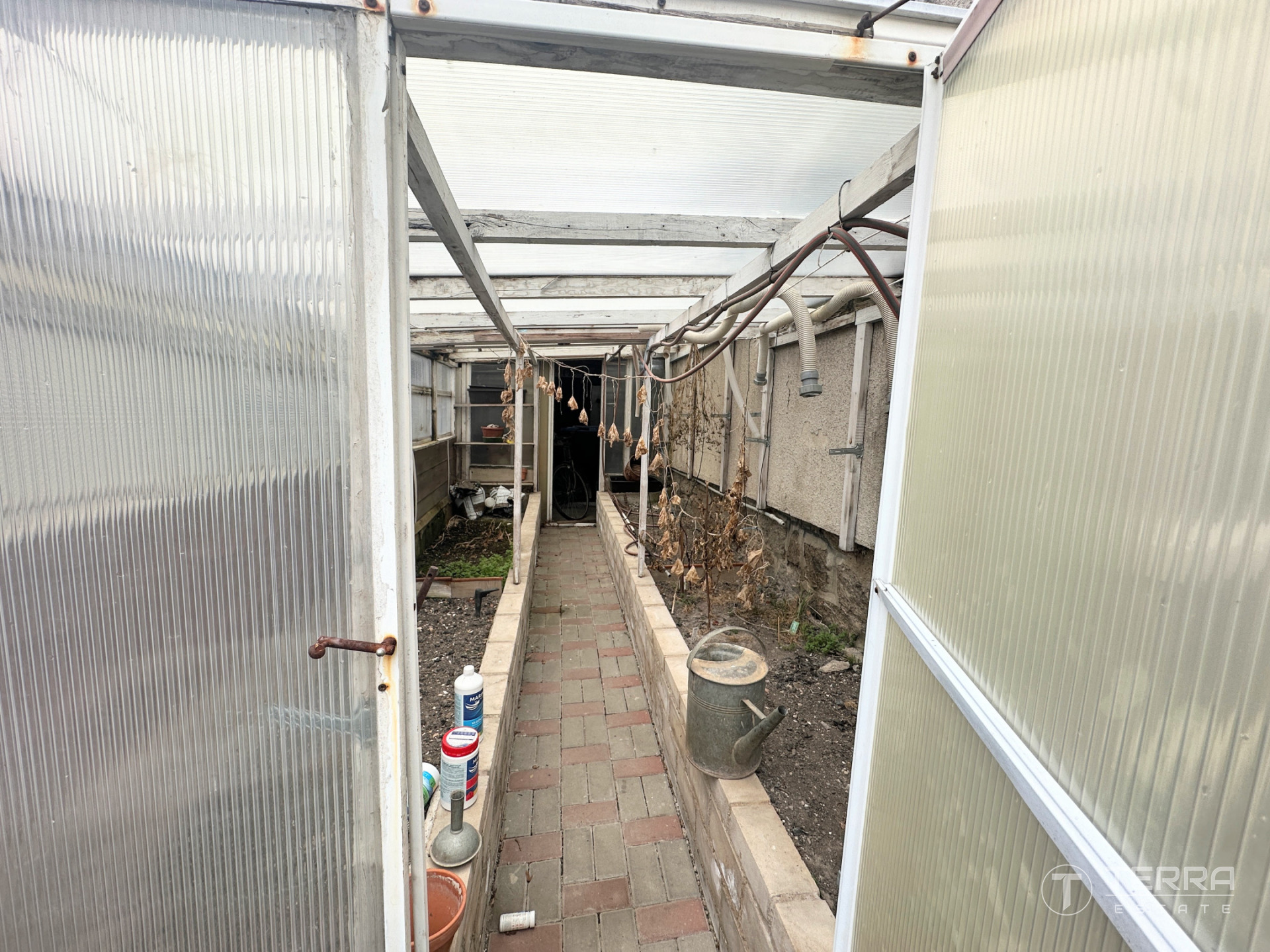 K chatě náleží pozemek o velikosti 282 m², na kterém se nachází pergola vhodná pro posezení, bazén a také skleník, ideální například pro pěstování zeleniny či bylinek.