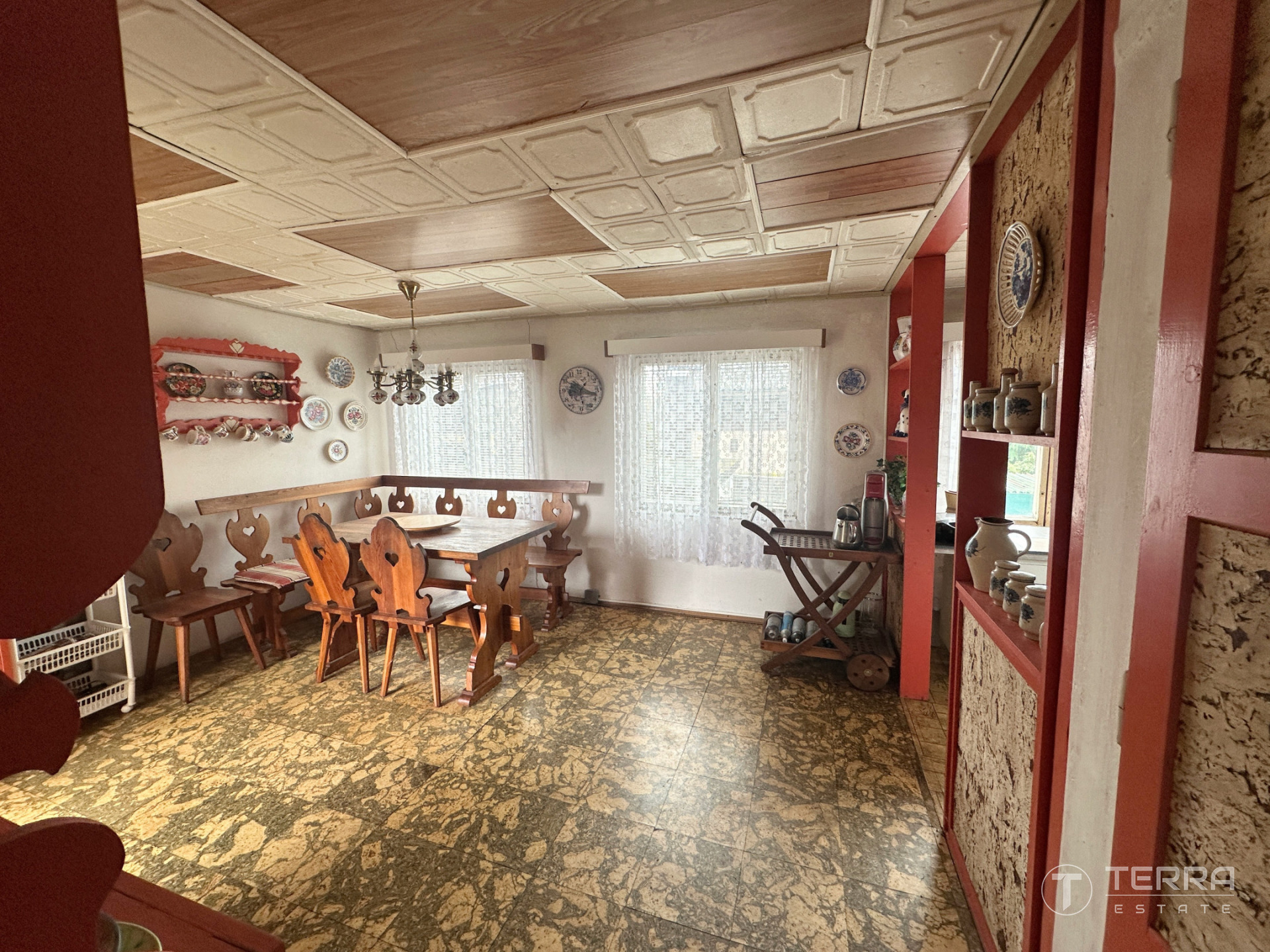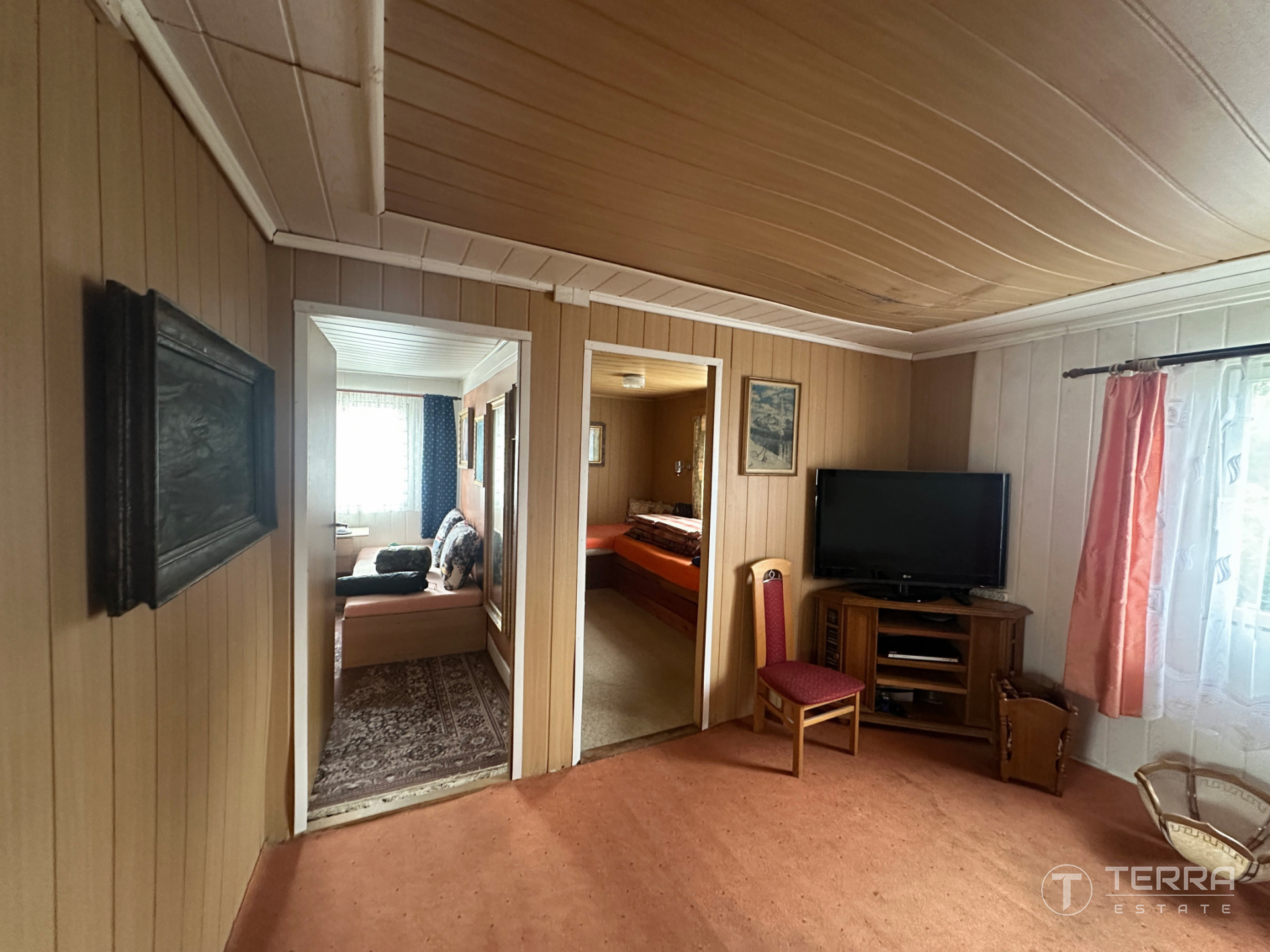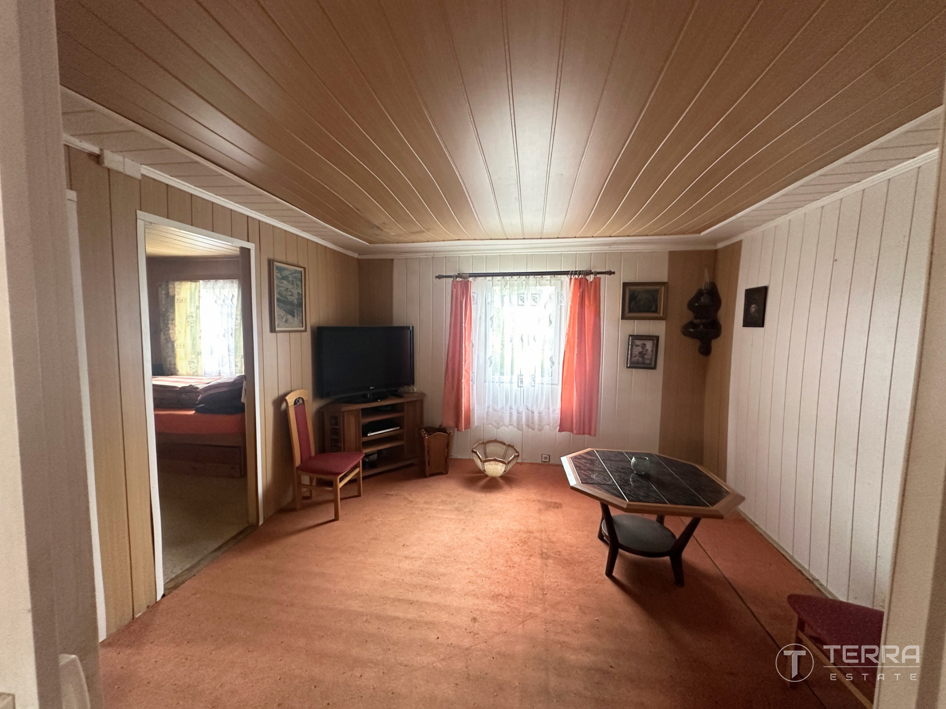 Chata dispozičně nabízí prostornou jídelní část propojenou s kuchyní, koupelnu se sprchovým koutem, dvě menší ložnice a samostatný obývací prostor. Objekt je částečně zděný a částečně dřevěný, primárně využívaný jako sezónní.