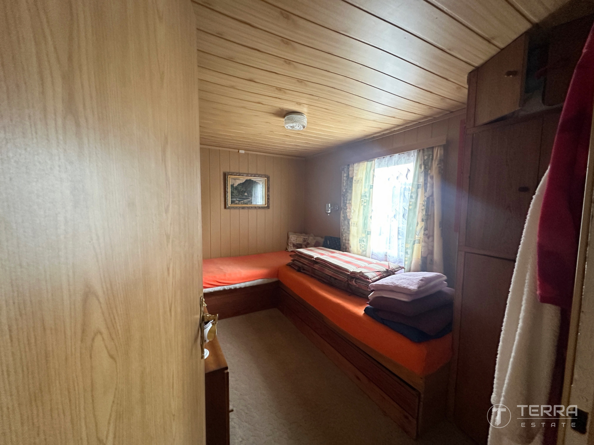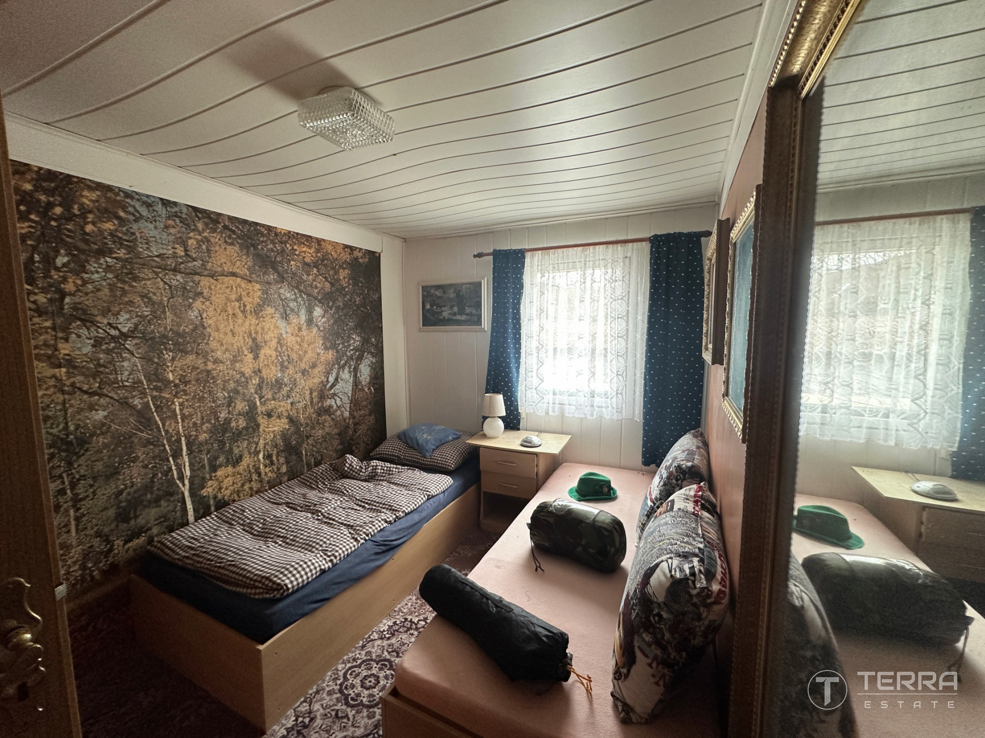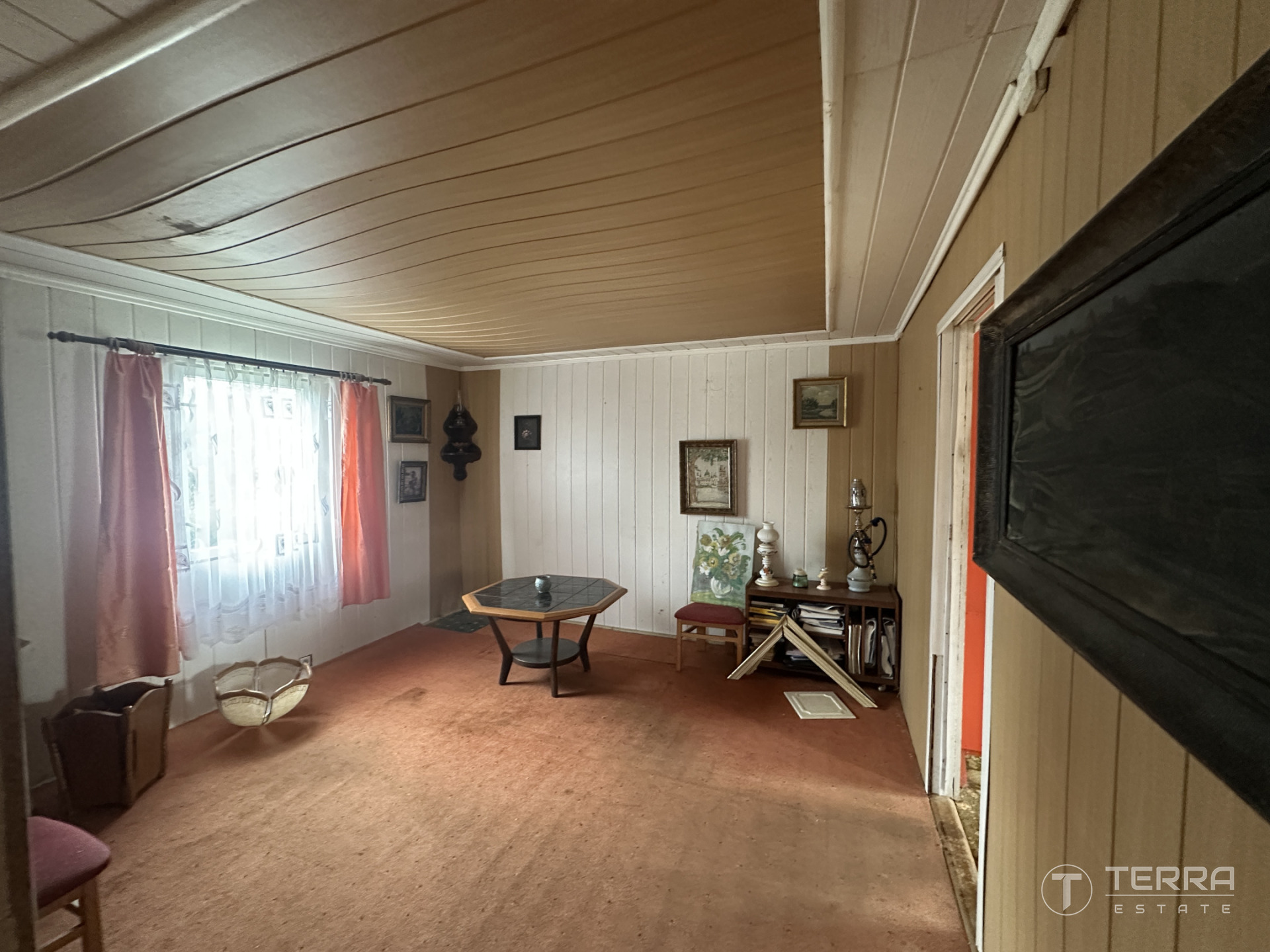 Chata dispozičně nabízí prostornou jídelní část propojenou s kuchyní, koupelnu se sprchovým koutem, dvě menší ložnice a samostatný obývací prostor. Objekt je částečně zděný a částečně dřevěný, primárně využívaný jako sezónní.