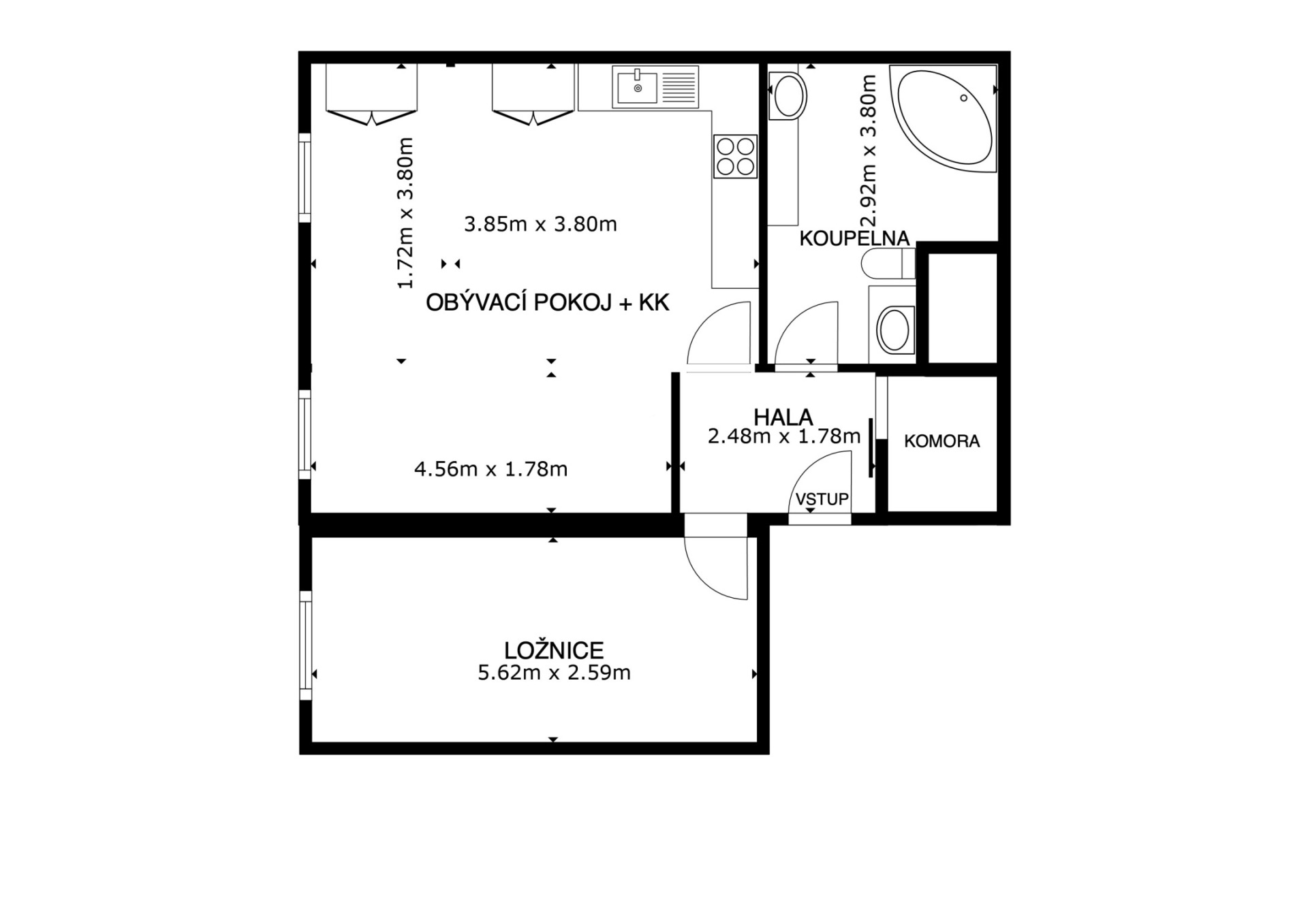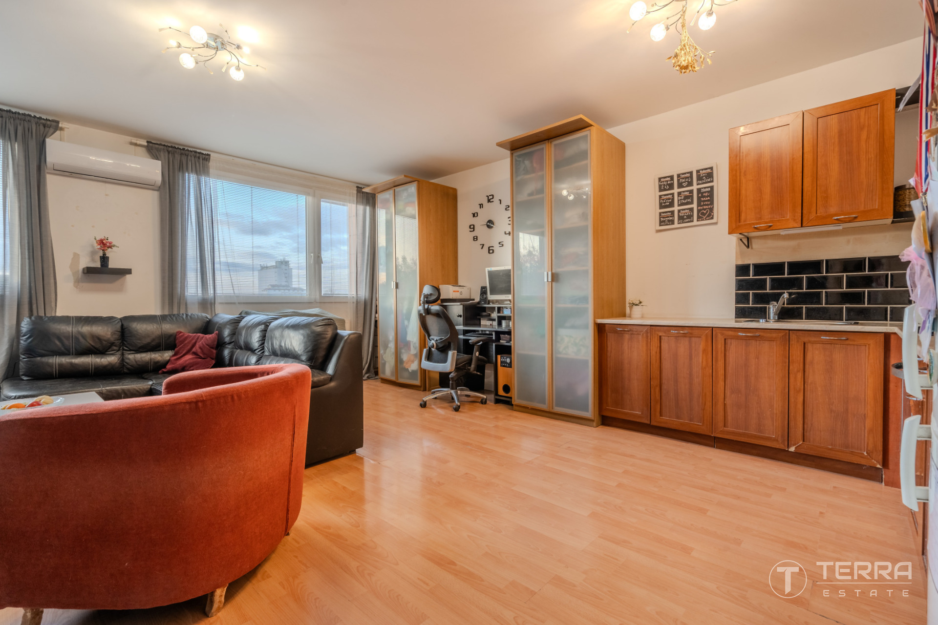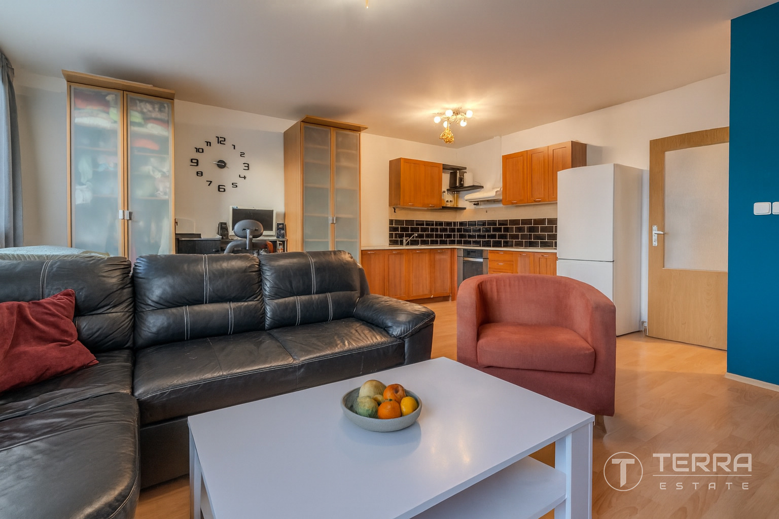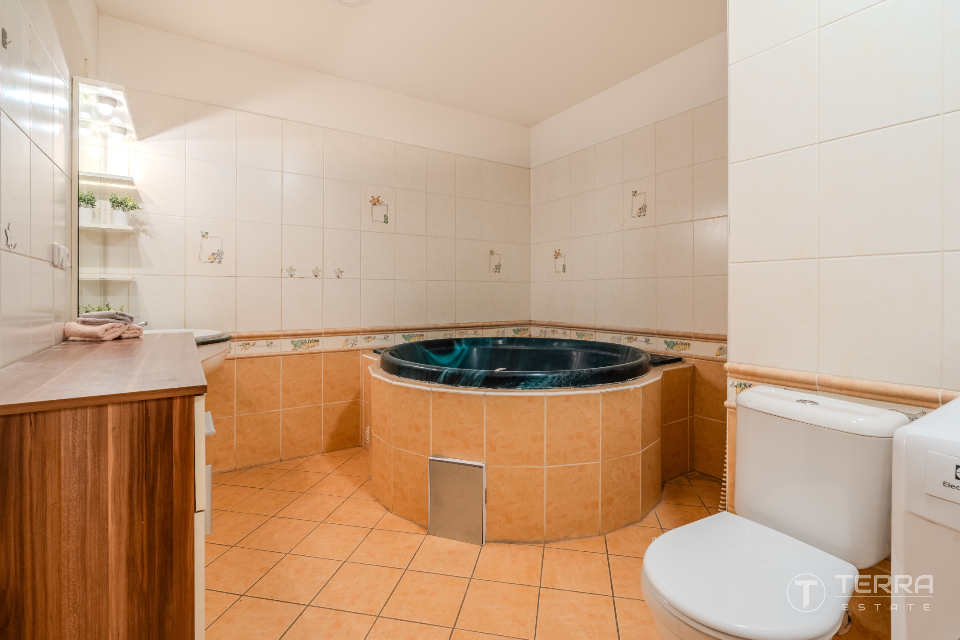 Byt je velmi prostorný – hlavní obytná část s kuchyňským koutem nabízí dostatek místa pro pohodlné bydlení, nechybí samostatná šatna ani prostorná koupelna. Velkým bonusem je zabudovaná klimatizace, která zpříjemní horké letní dny.